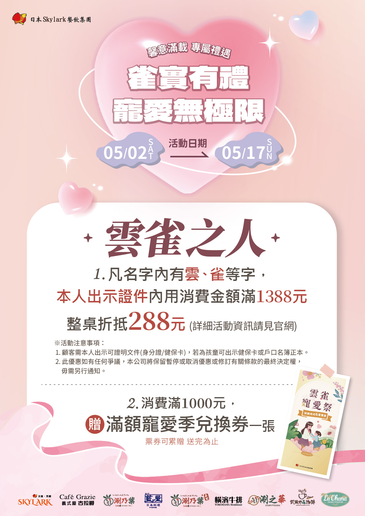 即可獲得雲雀國際【兒童三重優惠券】乙張
